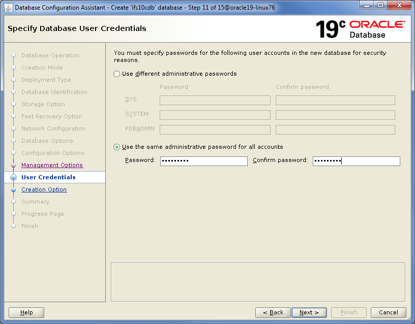 - Step 11 Specify Database User Credentials. Set passwords for SYS,