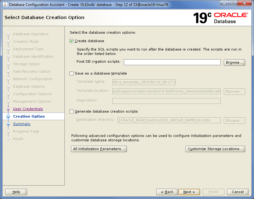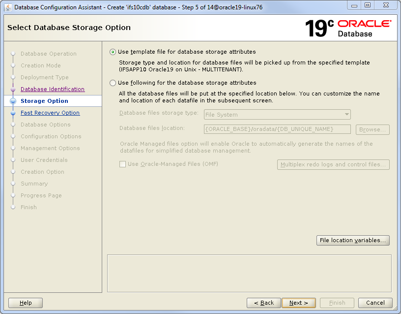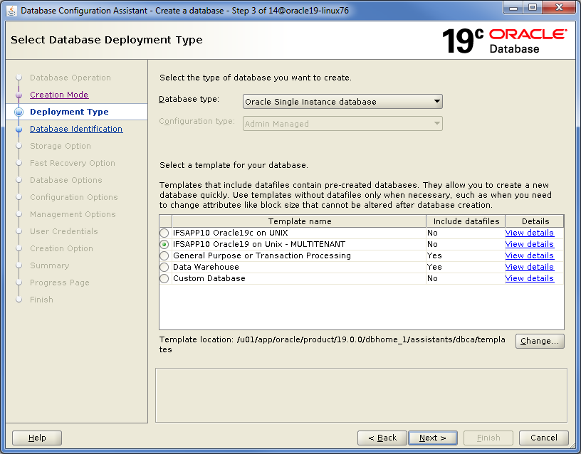 - Copy the DBCA template from <build_home>/template/fndbas/IFSAPP10_Unix_Oracle19c_MULTITENANT.dbt to