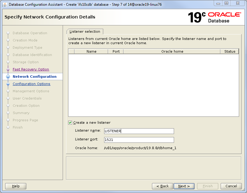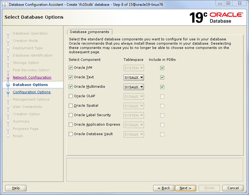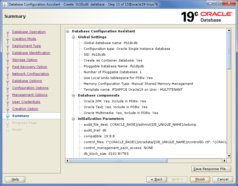 IFS Applications includes predefined Oracle Database Configuration Assistant