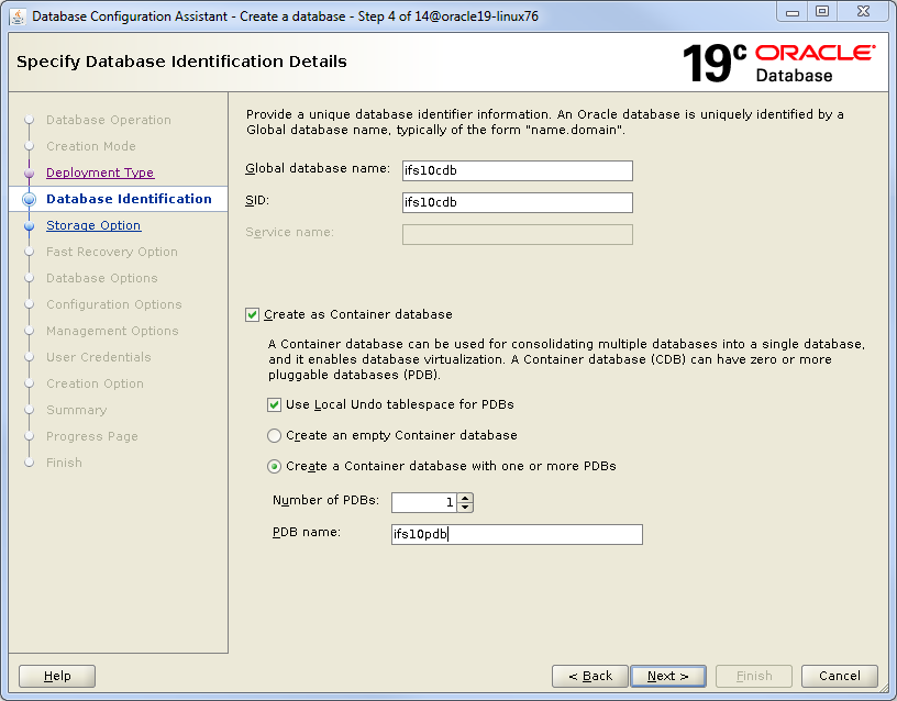 multitenant databases for IFS Applications 10 on Oracle 19c on