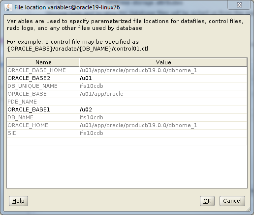 File location variables and update ORACLE_BASE1 and ORACLE_BASE2 variables.