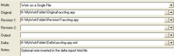 | Delta: | This is the xml file that stores the delta. If you ran in Folder Mode this would be a folder. Observe that a corresponding HTML file will be created. This is the file containing the delta report. |
