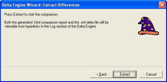 The Wizard will step by step guide you trough the setup of parameters for comparing or merging files. The intention of the Wizard is to ease the introduction of the Delta Engine to new users.